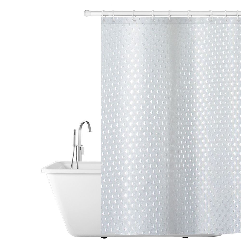 Занавеска для ванной выполнена из плотного полиэстера. Благодаря свойству водонепроницаемости и превосходному дизайну, данный аксессуар прекрасно впишется в любой интерьер ванной комнаты и станет надежной защитой от намокания посторонних предметов. Занавеска снабжена десятью пластиковыми колечками.